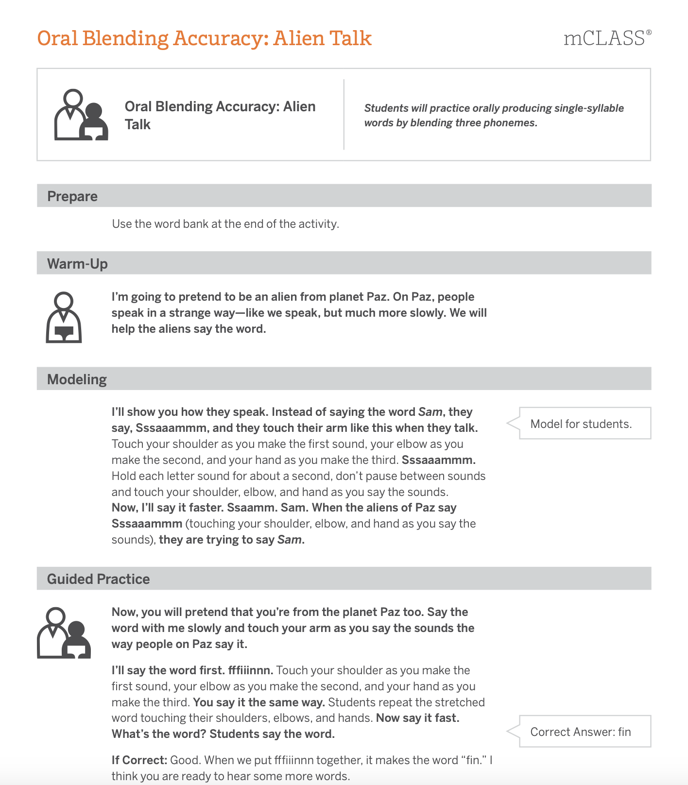 A typical lesson then proceeds to the New Concepts part where students learn key phonemic skills that will help them continue to grow as readers and writers.