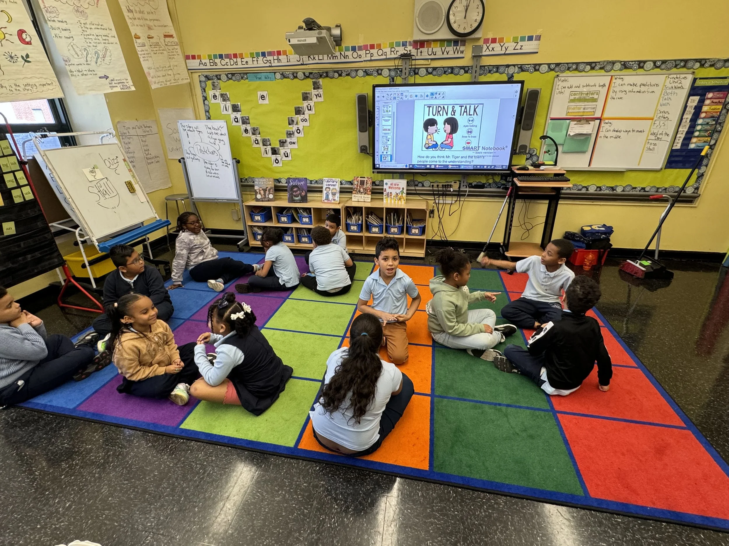 In my class I incorporate visual prompts of the text and vocabulary words so that language connections can be made. Afterwards the scholars have the ability to put their understanding into action as the student apply their thinking during a turn and talks, writing, and presentation of their pieces to the class.